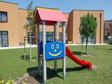Turm, Rutsche, Dach in "A" form, 2x Barriere, Reckstangenaufstieg mit Haltegriffen. Mehr Informationen