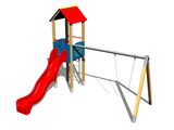 Sitz- und Schwenkgelenke sind nicht Teil der Schaukel. Es ist notwendig, einen Sitzplatz (1 Stück) nach Wahl und Drehgelenke (2 Stück) zu kaufen. Turm, Rutsche, Dach in "A" form, 2x Barriere, Reckstangenaufstieg mit Haltegriffen, Metallbalken. Mehr Informationen