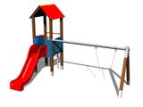 Sitz- und Schwenkgelenke sind nicht Teil der Schaukel. Es ist notwendig, einen Sitzplatz (1 Stück) nach Wahl und Drehgelenke (2 Stück) zu kaufen. Turm, Rutsche, Dach in "A" form, 2x Barriere, Reckstangenaufstieg mit Haltegriffen, Metallbalken. Mehr Informationen