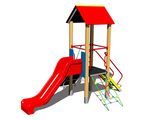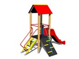 Turm, Rutsche, Dach in "A" form, Steilkletternetz, Steilaufstieg mit Metallhaltegriffen,Steilaufstieg mit Seil. Mehr Informationen