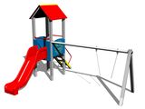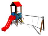 Sitz- und Schwenkgelenke sind nicht Teil der Schaukel. Es ist notwendig, einen Sitzplatz (1 Stück) nach Wahl und Drehgelenke (2 Stück) zu kaufen. Turm, Rutsche, Dach in "A" form, 2x Barriere, Steilaufstieg mit Metallhaltegriffen, Metallbalken. Mehr Informationen