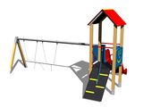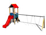 Sitz- und Schwenkgelenke sind nicht Teil der Schaukel. Es ist notwendig, einen Sitzplatz (2 Stück) nach Wahl und Drehgelenke (4 Stück) zu kaufen. Turm, Rutsche, Dach in "A" form, 2x Barriere, Steilaufstieg mit Seil, Ketten-Doppelschaukel. Mehr Informationen