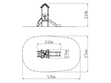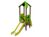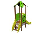 Turm, Rutsche, Dach in Blattform, 2x Barriereaus HDPE, Schrägrampe mit Stufen und HDPE-Griffen. Mehr Informationen