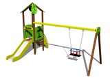 Turm, Rutsche, Dach in Blattform, 2x Barriereaus HDPE, Schrägrampe mit Stufen und HDPE-Griffen, Sitz BABY. Mehr Informationen