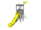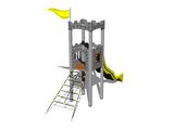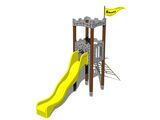 Turm, Rutsche, 2x Barriereaus HDPE, Steilkletternetz, Seilbrücke, Fahne, Zinnen aus HDPE. Mehr Informationen