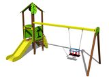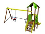 Turm, Rutsche, Dach in Blattform, 2x Barriereaus HDPE, Schrägrampe mit Stufen und HDPE-Griffen, Sitz BABY. Mehr Informationen
