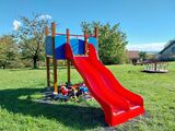 Turm, Rutsche, Steilaufstieg mit Seil, Steilkletternetz, 2x Schranke, Rechentafel. Mehr Informationen