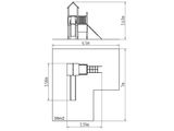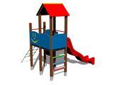 2x Turm, Rutsche, Dach in "A" form, 4x Barriere aus HDPE, Steilkletternetz, Rechentafel, Zeichentafel. Mehr Informationen