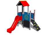 2x Turm, Dach in "A" form, Rutsche, 4x Barriere aus HDPE, Steilaufstieg mit Seil, Zeichentafel, Rechentafel. Mehr Informationen