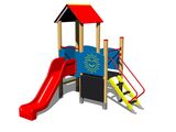2x Turm, Dach in "A" form, Rutsche, 4x Barriere aus HDPE, Steilaufstieg mit Metallhaltegriffen, Zeichentafel, Rechentafel. Mehr Informationen