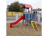2x Turm, Dach in "A" form, Rutsche, 4x Barriere aus HDPE, Steilaufstieg mit Metallhaltegriffen, Zeichentafel, Rechentafel. Mehr Informationen