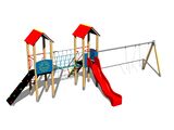 Sitz- und Schwenkgelenke sind nicht Teil der Schaukel. Es ist notwendig, einen Sitzplatz (2 Stück) nach Wahl und Drehgelenke (4 Stück) zu kaufen. 2x Turm, 2x Dach in "A" form, 2x Barriereaus HDPE, Steilaufstieg mit Metallhaltegriffen, Leiteraufstieg mit Metallsprossen, Seilbrücke, Steilkletterwand mit Handgriffen, Metallbalken. Mehr Informationen
