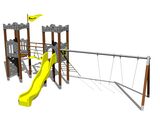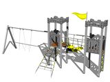 Sitz- und Schwenkgelenke sind nicht Teil der Schaukel. Es ist notwendig, einen Sitzplatz (2 Stück) nach Wahl und Drehgelenke (4 Stück) zu kaufen. 2x Turm, Rutsche, 3x Barriereaus HDPE, Steilkletternetz, Senkrechte Kletterwand am Turm mit Trittstufen, Fahne, 2x Zinnen aus HDPE, Seilbrücke mit Stufen, Metallbalken. Mehr Informationen