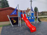 2x Turm, Rutsche, Metallsperre im Holzrahmen, 2x Mast mit Fahne, Zeichentafel, Steilaufstieg mit Seil, Brücke mit Seilgeländern, Steilkletternetz, Anker, Ruder, Barriere Bullauge,2x Barriere aus HDPE. Mehr Informationen