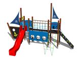 2x Turm, Rutsche, Metallsperre im Holzrahmen, 2x Mast mit Fahne, Zeichentafel, Steilaufstieg mit Seil, Brücke mit Seilgeländern, Steilkletternetz, Anker, Ruder, Barriere Bullauge,2x Barriere aus HDPE. Mehr Informationen