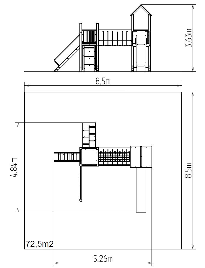 | Fallschutzfläche: | Gummi oder Kies 72,5 m2 |
