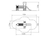 2x Turm, Rutsche, Dach in "A" form, Barriereaus HDPE, Steilaufstieg mit Seil, Seilbrücke, Steilkletternetz, Reckstangenaufstieg mit Haltegriffen. Mehr Informationen