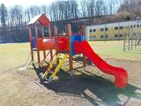 3x Turm, 2x Rutsche, Dach in "A" form, 3x Barriereaus HDPE, Reckstangenaufstieg mit Haltegriffen, Seilbrücke, Kriechtunnel zwischen Türmen, Steilkletternetz, Steilaufstieg mit Metallhaltegriffen. Mehr Informationen