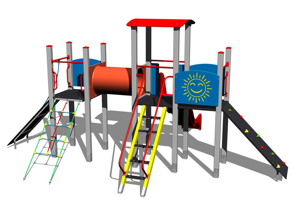Die Tragkonstruktion der Turm-Spielanlage wird aus Baustahl hergestellt, die gegen Korrosion mit Zinkbeschichtung geschützt wird oder die Duplexbeschichtung mit Pulvereinbrennfarbe nach der RAL geschützt. Diese Tragkonstruktionen sind in die Betonfundamente verankert. Die gesamten Metallelemente sind auch verzinkt oder die Duplexbeschichtung mit Pulvereinbrennfarbe nach der RAL geschützt.