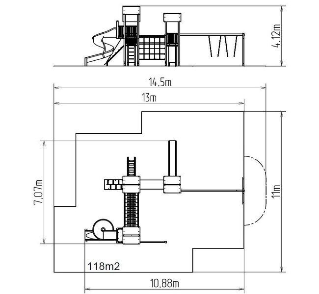 | Fallschutzfläche: | Gummi oder Kies 118 m2 |