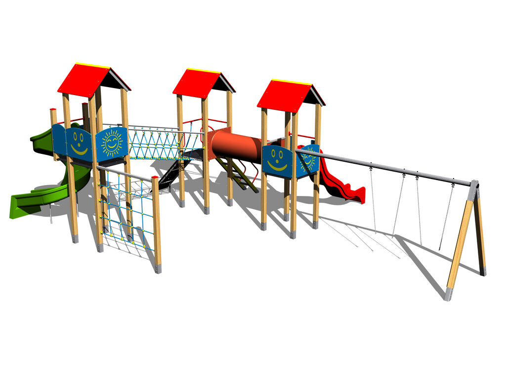 Sitz- und Schwenkgelenke sind nicht Teil der Schaukel. Es ist notwendig, einen Sitzplatz (2 Stück) nach Wahl und Drehgelenke (4 Stück) zu kaufen. 3x Turm, Rutsche, Tunnelrutsche, 3x Dach in "A" form, 6x Barriereaus HDPE, Seilbrücke, Steilaufstieg mit Seil, Steilaufstieg mit Metallhaltegriffen, Steilkletternetz 2x2 m, Kriechtunnel zwischen Türmen, Metallbalken. Mehr Informationen