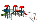 Sitz- und Schwenkgelenke sind nicht Teil der Schaukel. Es ist notwendig, einen Sitzplatz (2 Stück) nach Wahl und Drehgelenke (4 Stück) zu kaufen. 3x Turm, Rutsche, Tunnelrutsche, 3x Dach in "A" form, 6x Barriereaus HDPE, Seilbrücke, Steilaufstieg mit Seil, Steilaufstieg mit Metallhaltegriffen, Steilkletternetz 2x2 m, Kriechtunnel zwischen Türmen, Metallbalken. Mehr Informationen