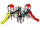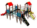 4x Turm, 2x Rutsche, 2x Dach in "A" form, 3x Barriereaus HDPE, Reckstangenaufstieg mit Haltegriffen, Steilaufstieg mit Metallhaltegriffen, Steilaufstieg mit Seil, 2x Seilbrücke, 2x Brücke mit Seilgeländern. Mehr Informationen