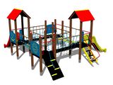 4x Turm, 2x Rutsche, 2x Dach in "A" form, 3x Barriereaus HDPE, Reckstangenaufstieg mit Haltegriffen, Steilaufstieg mit Metallhaltegriffen, Steilaufstieg mit Seil, 2x Seilbrücke, 2x Brücke mit Seilgeländern. Mehr Informationen
