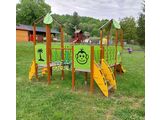 4x Turm, 2x Rutsche, 2x Dach in Blattform, 2x Barriereaus HDPE, 2x Seilbrücke, 2x Schauloch, 2x Schrägrampe mit Stufen und HDPE-Griffen, 2x Brücke mit Kunststoffgeländer. Mehr Informationen