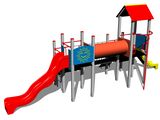 4x Turm, 2x Rutsche, Steilaufstieg mit Seil, Steilkletterwand mit Handgriffen, vertikale Leiter, 2x Barriereaus HDPE, „A“-förmiges Vordach, Klettertunnel zwischen den Türmen, Brücke mit Seilgeländer zwischen den Türmen, Feuerwehrstange. Mehr Informationen