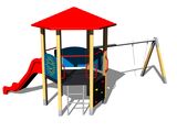 Sitz- und Schwenkgelenke sind nicht Teil der Schaukel. Es ist notwendig, einen Sitzplatz (1 Stück) nach Wahl und Drehgelenke (2 Stück) zu kaufen. Turm, Dach, Rutsche, 3x Barriere aus HDPE, Reckstangenaufstieg mit Haltegriffen, Steilkletterwand am Turm, Metallbalken. Mehr Informationen