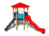 Turm, Rutsche, Dach, 3x Barriere aus HDPE, Reckstangenaufstieg mit Haltegriffen, Steilaufstieg mit Seil. Mehr Informationen