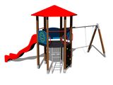 Sitz- und Schwenkgelenke sind nicht Teil der Schaukel. Es ist notwendig, einen Sitzplatz (1 Stück) nach Wahl und Drehgelenke (2 Stück) zu kaufen. Turm, Dach, Rutsche, 3x Barriere aus HDPE, Reckstangenaufstieg mit Haltegriffen, Steilkletterwand am Turm, Metallbalken. Mehr Informationen