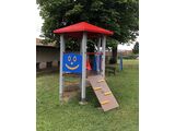 Turm, Rutsche, Dach, 3x Barriere aus HDPE, Reckstangenaufstieg mit Haltegriffen, Steilaufstieg mit Seil. Mehr Informationen