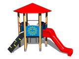 Turm, Rutsche, Dach, 3x Barriere aus HDPE, Reckstangenaufstieg mit Haltegriffen, Steilaufstieg mit Seil. Mehr Informationen