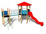 2x Turm, Dach, Rutsche, Steilkletternetz, Reckstangenaufstieg mit Haltegriffen, 5x Barriere aus HDPE. Mehr Informationen