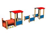 Die Tragkonstruktion von Zug besteht aus Leimbalken. Diese Lösung bietet maximalen Schutz gegen Rissbildung im Holz, die bei den Produkten aus exzentrischem Holz üblich ist. Die Oberflächenbehandlung besteht in Tiefenimprägnierung und 3-Schichten Lackbehandlung, die die Anforderungen der Norm EN 71/3 erfüllen (Sicherheit der Kinderspielzeuge).